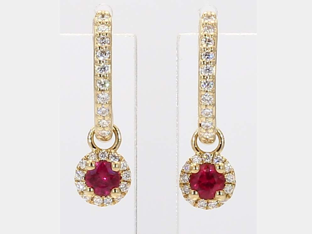 ROUND RUBY & ROUND DIAMOND 14KY EARRING