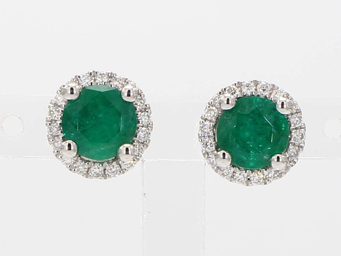 ROUND EMERALD & ROUND DIAMOND 14KW EARRING