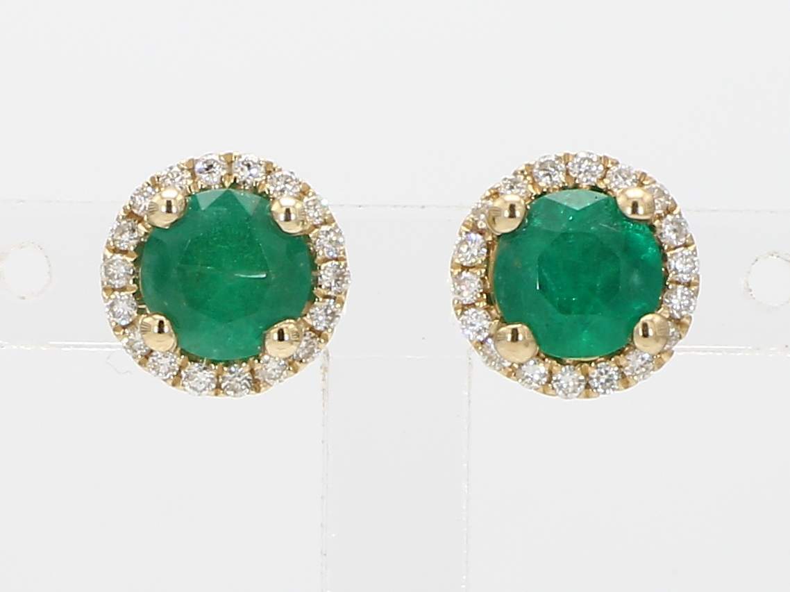 ROUND EMERALD & ROUND DIAMOND 14KY EARRING