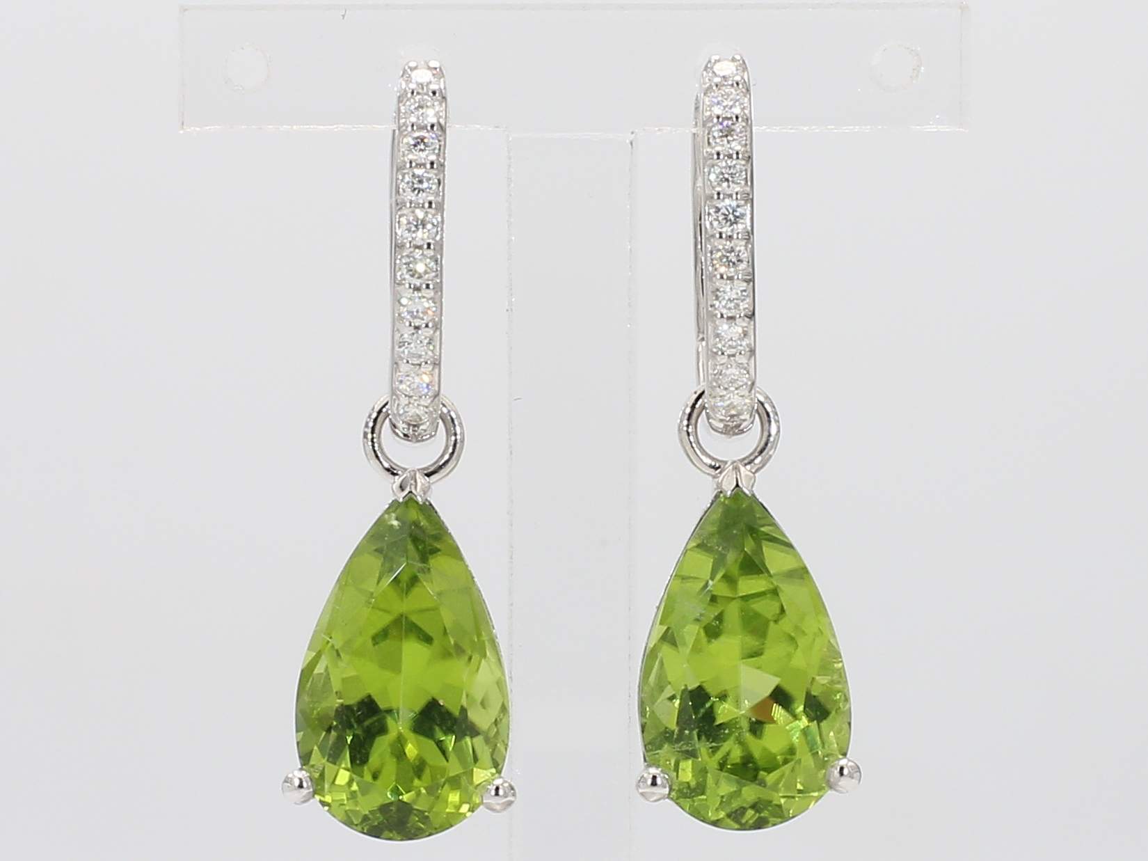 PEAR SHAPE PERIDOT & ROUND DIAMOND 14KW EARRING