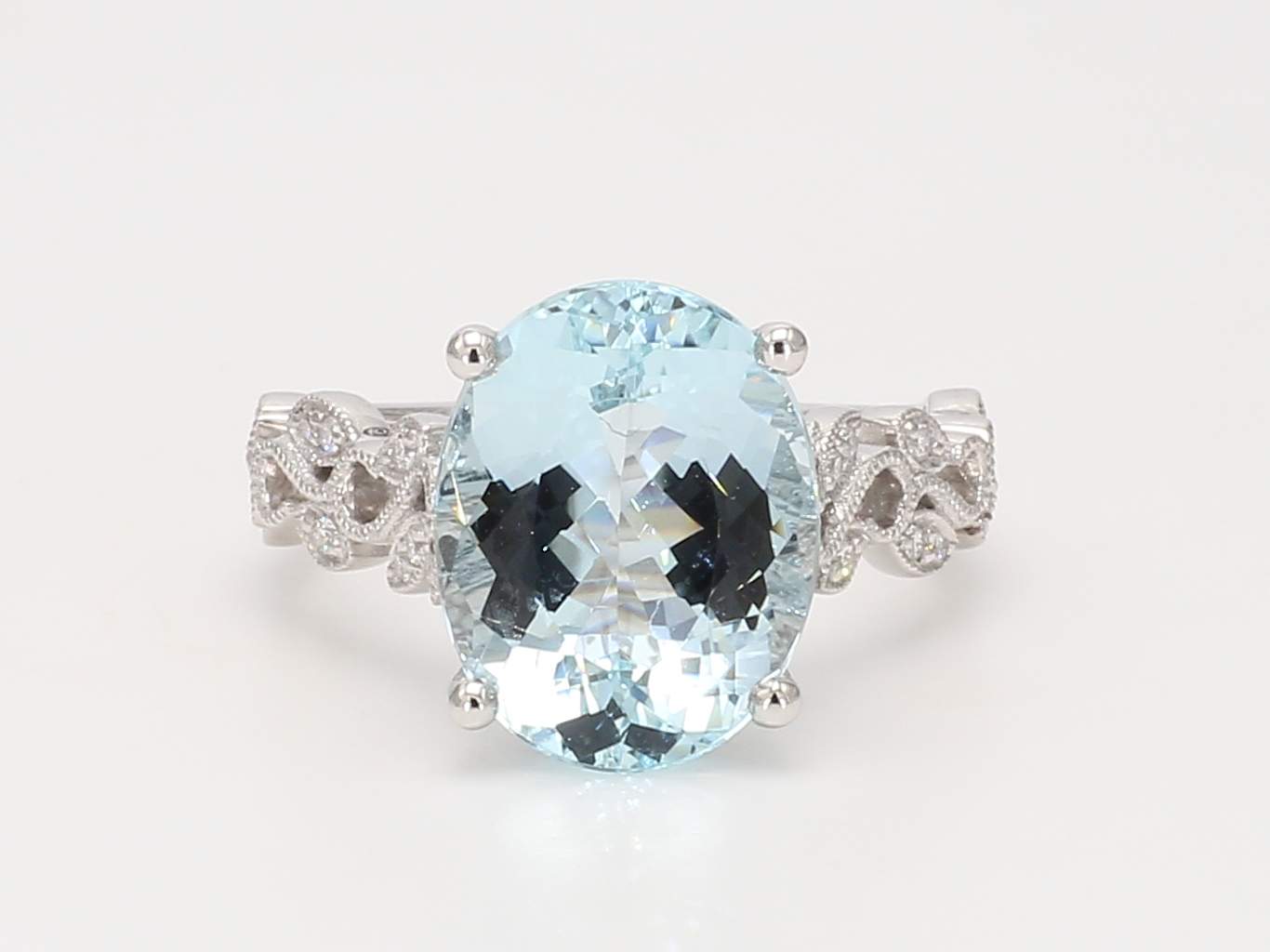 OVAL AQUAMARINE & ROUND DIAMOND 14KW RING