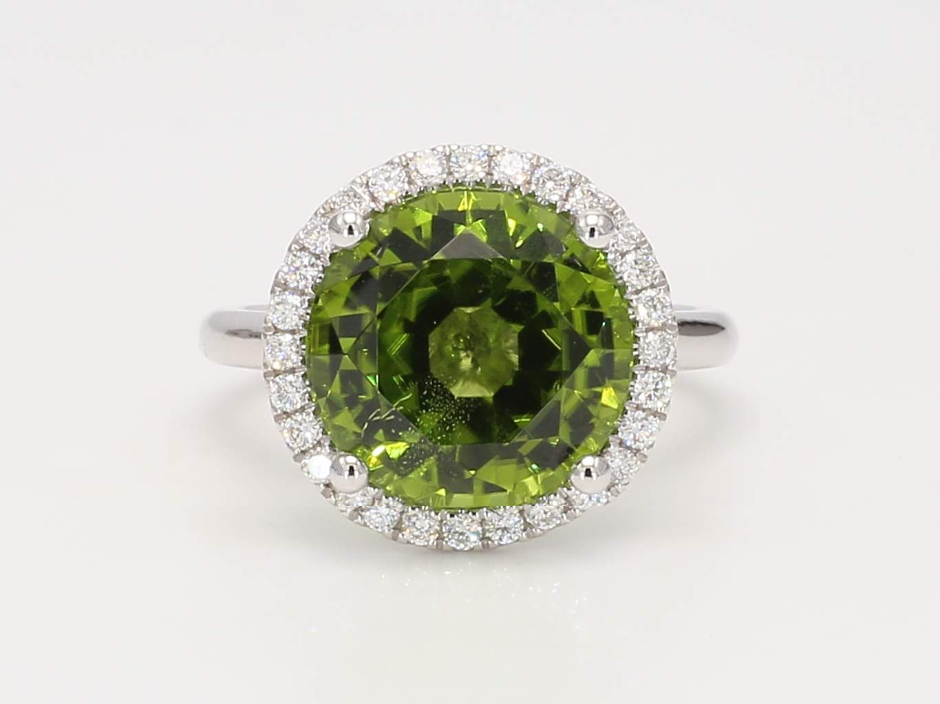 ROUND PERIDOT & ROUND DIAMOND 14KW RING