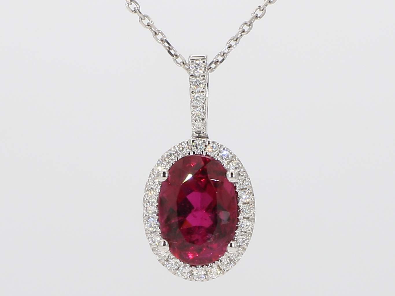 OVAL RUBELLITE & ROUND DIAMOND 14KW PENDANT