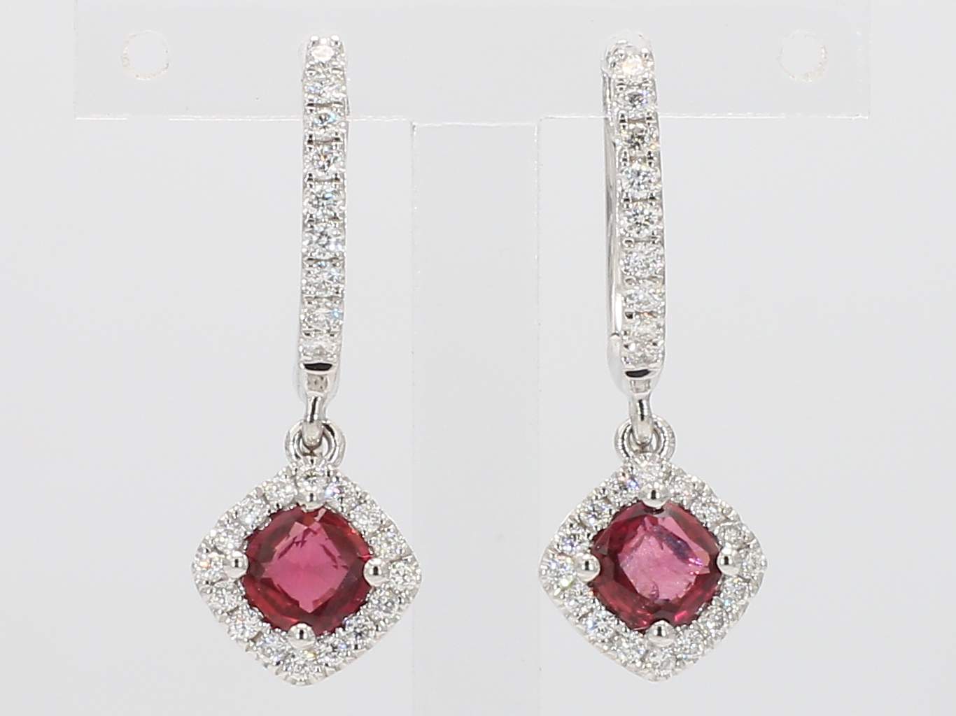 CUSHION UNHEATED RUBY & ROUND DIAMOND 14KW EARRING
