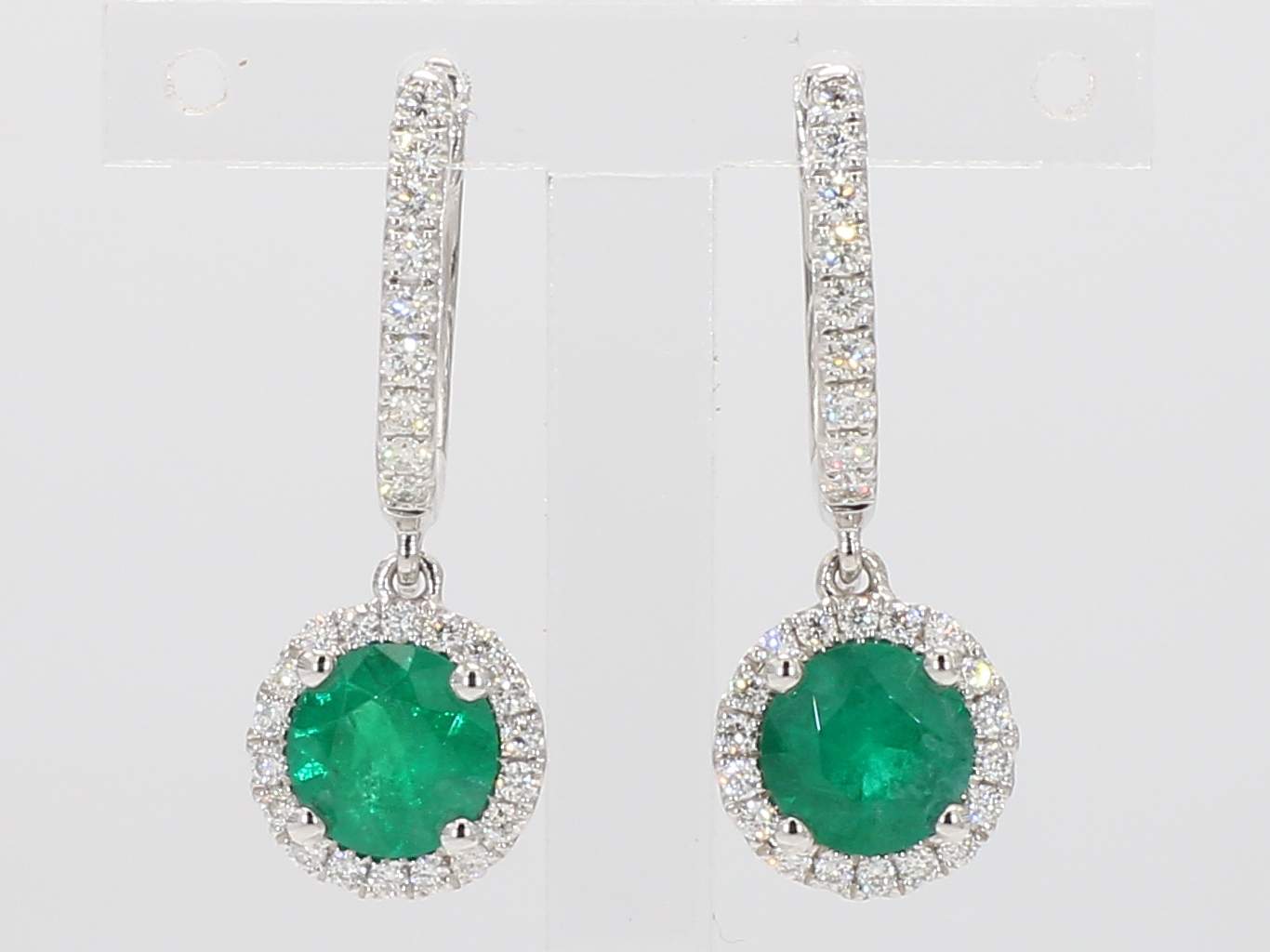 ROUND EMERALD & ROUND DIAMOND 14KW EARRING