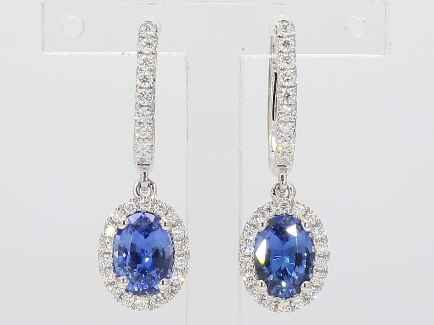 OVAL SAPPHIRE & ROUND DIAMOND 14KW EARRING