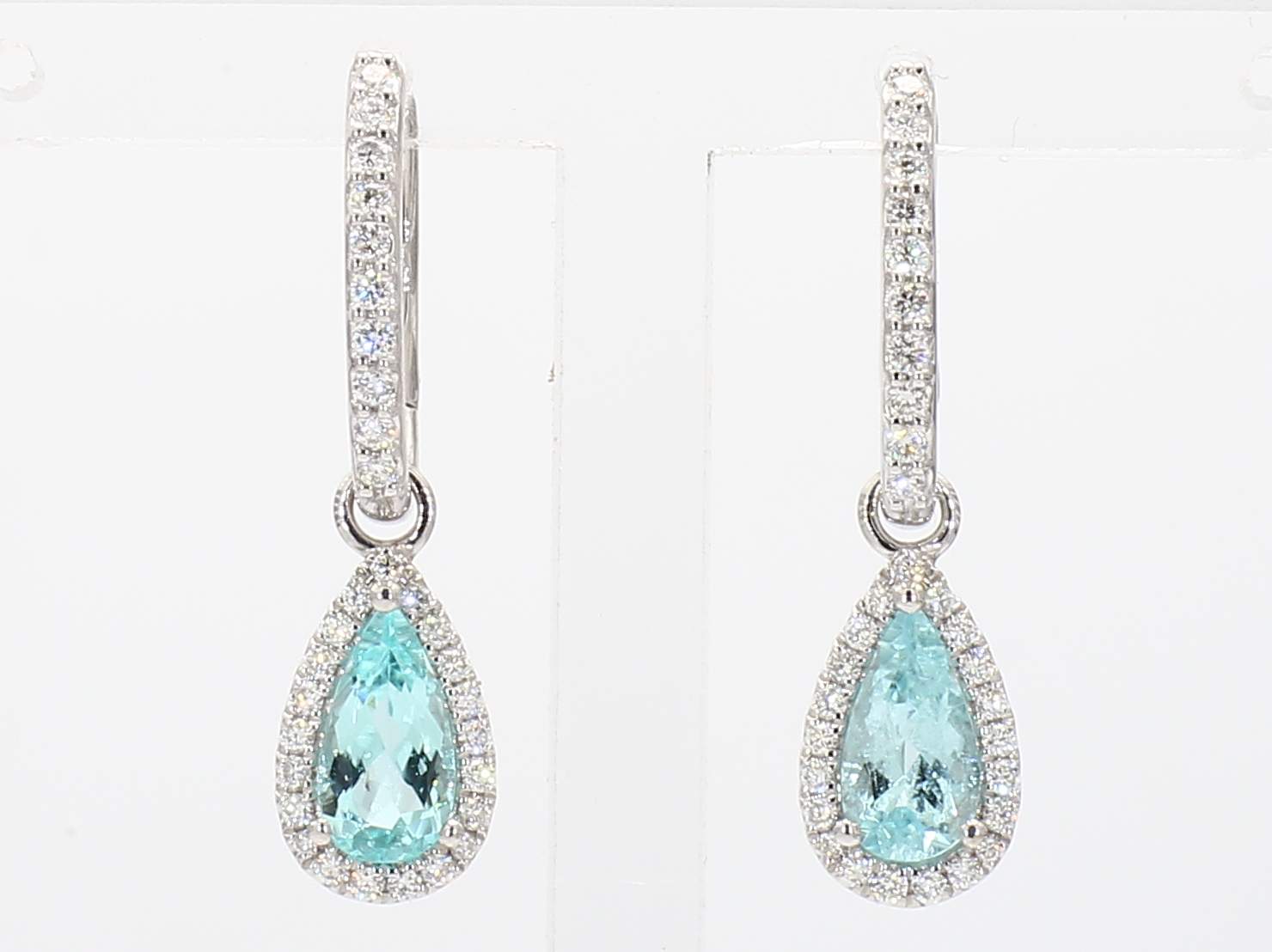 PEAR SHAPE PARAIBA TOURMALINE GIA 2225329232, 5222329247 & ROUND DIAMOND 14KW EARRING