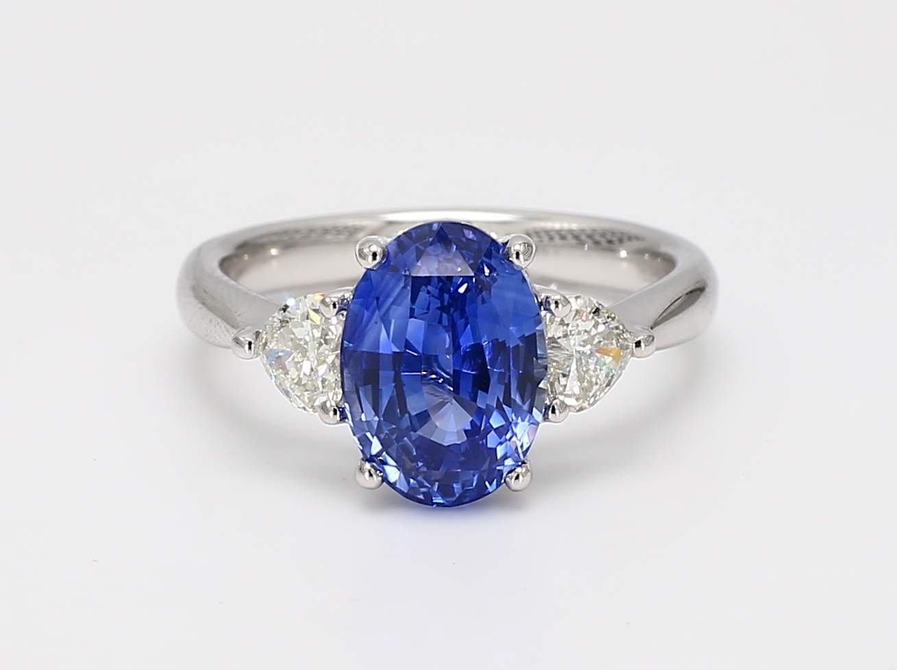 OVAL SAPPHIRE CDC 2405976 & HEART SHAPE DIAMOND PLATINUM RING