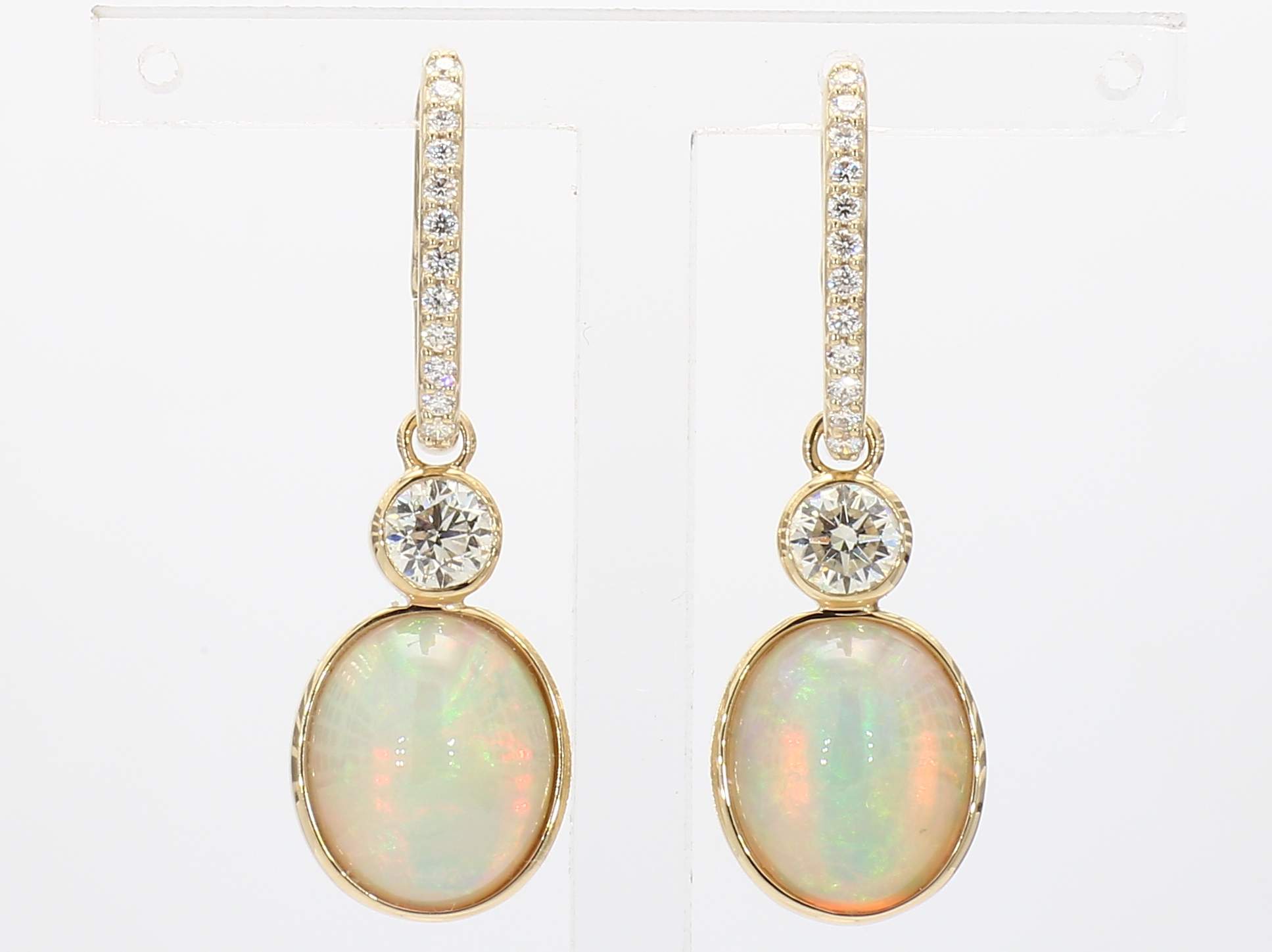 OVAL OPAL & ROUND DIAMOND 14KY EARRING