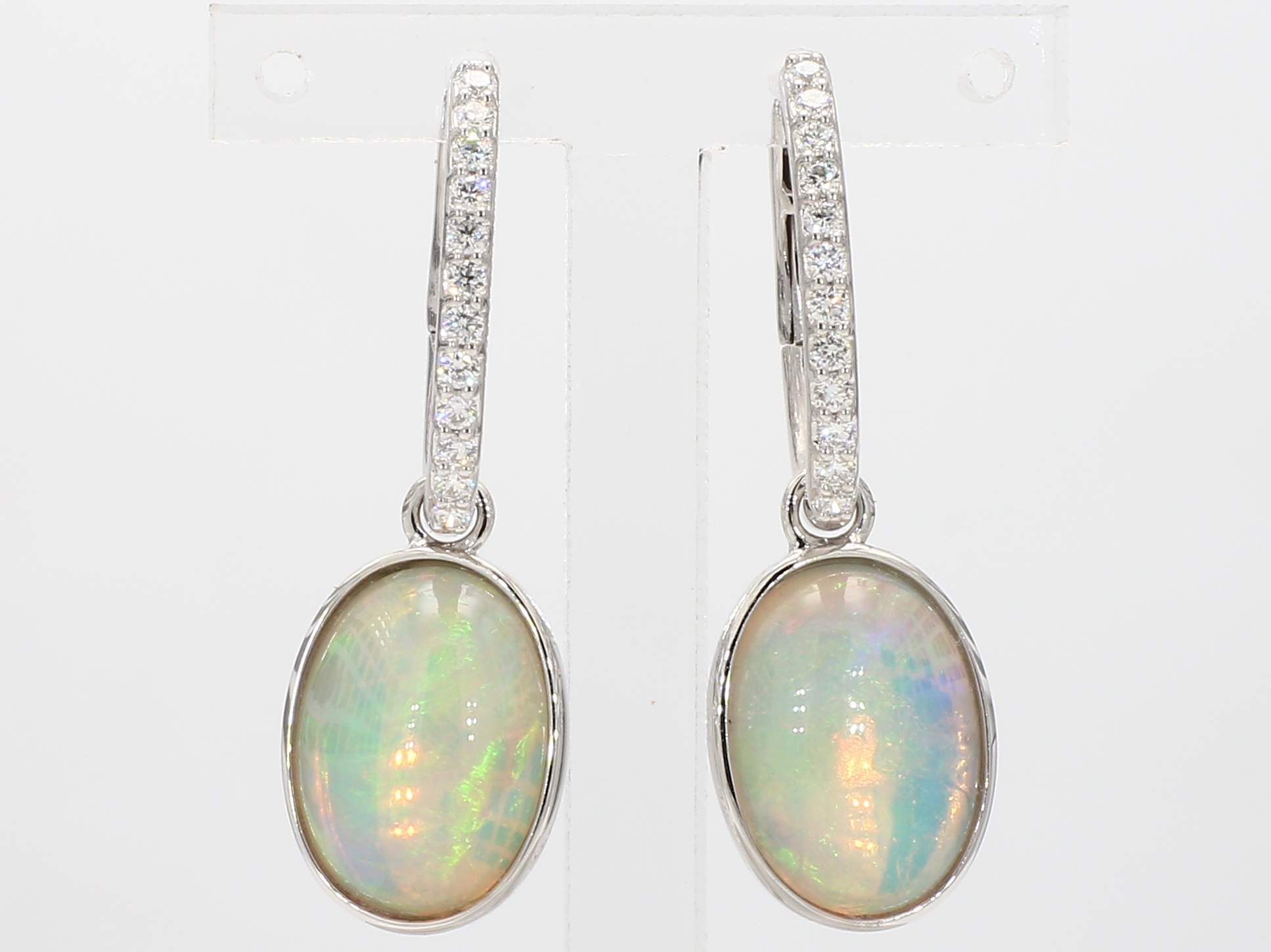 OVAL OPAL & ROUND DIAMOND 14KW EARRING