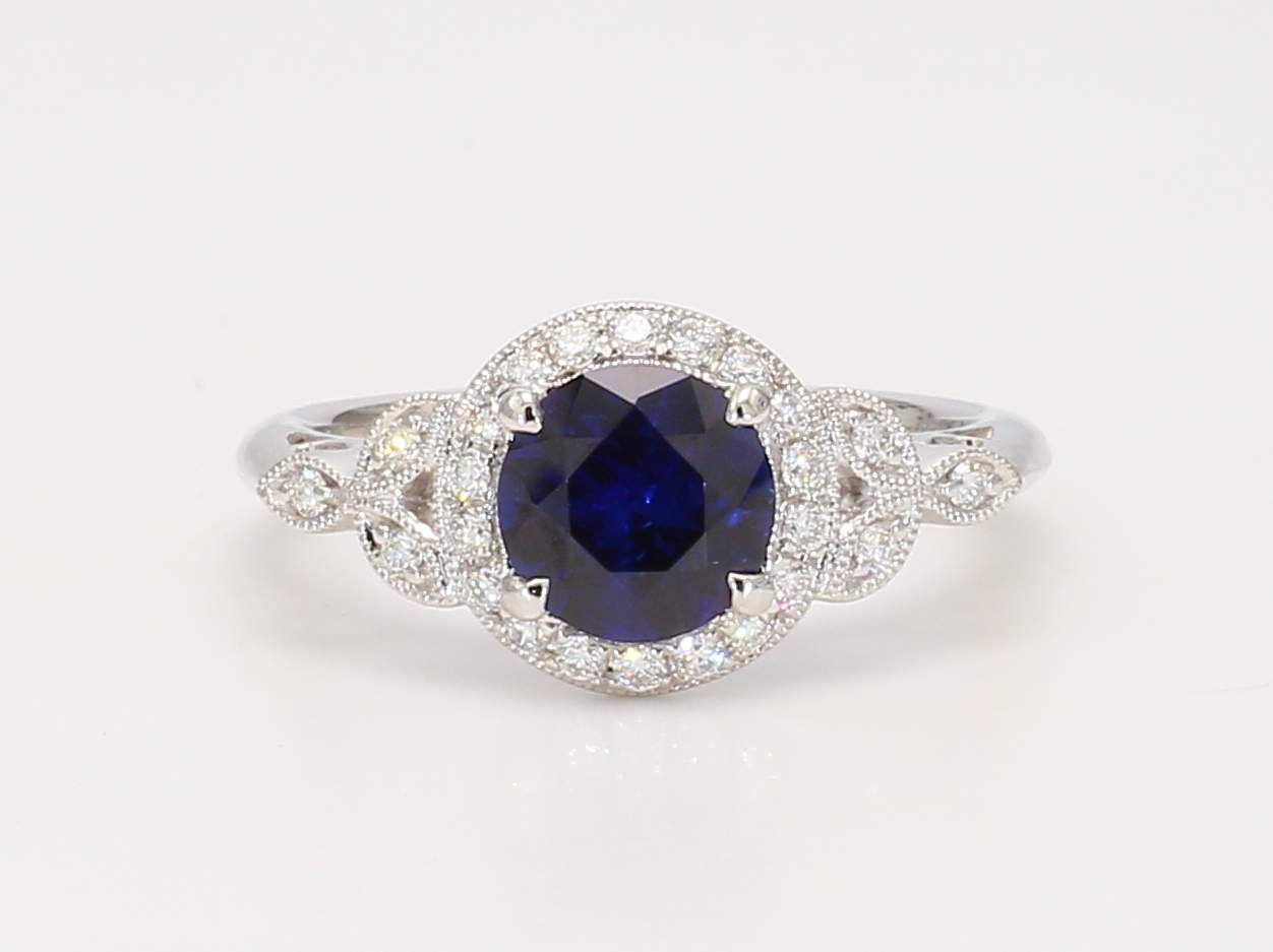 ROUND SAPPHIRE & ROUND DIAMOND 14KW RING