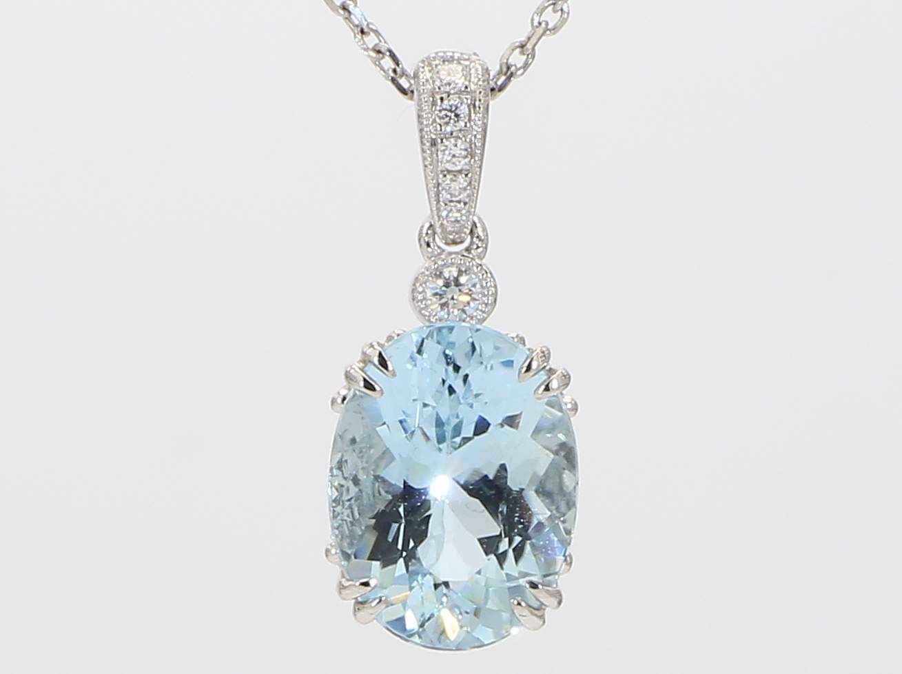 OVAL AQUAMARINE & ROUND DIAMOND 14KW PENDANT