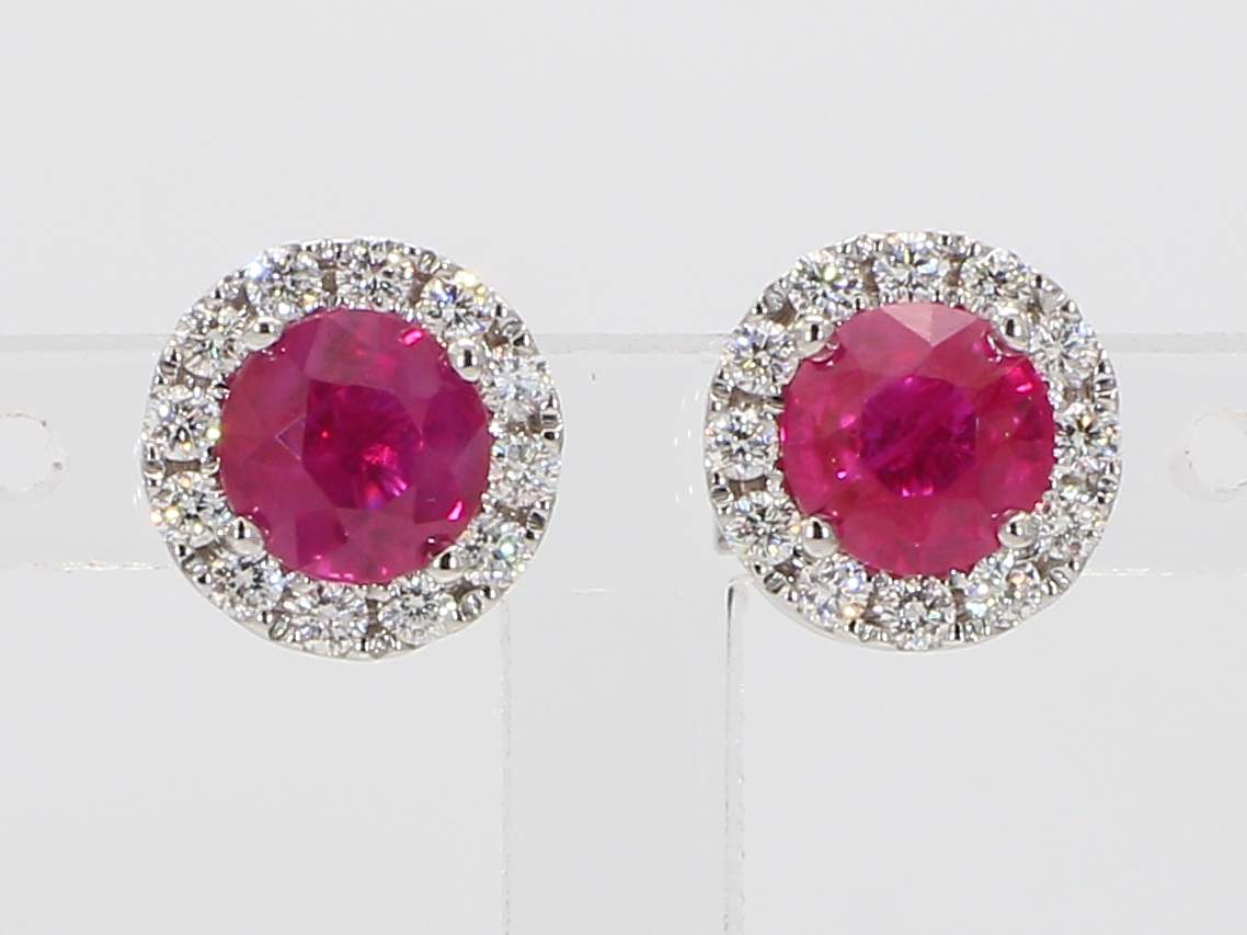 ROUND RUBY & ROUND DIAMOND 14KW EARRING