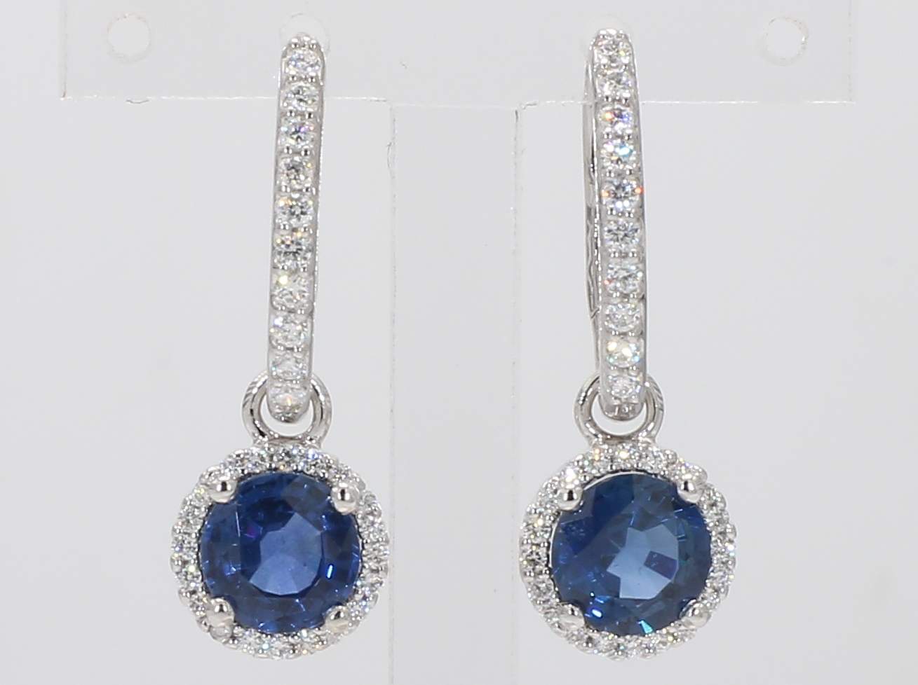 ROUND SAPPHIRE & ROUND DIAMOND 14KW EARRING