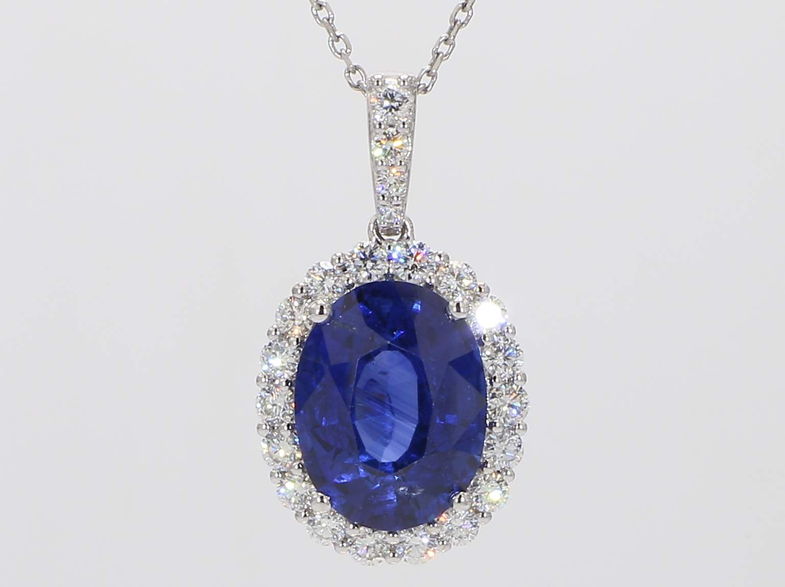 OVAL SAPPHIRE VIVID BLUE CDC 2208853 & ROUND DIAMOND 18KW PENDANT