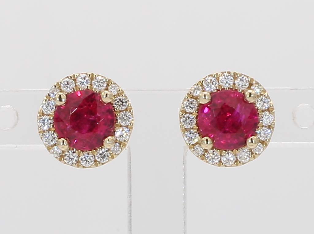 ROUND RUBY & ROUND DIAMOND 14KY EARRING