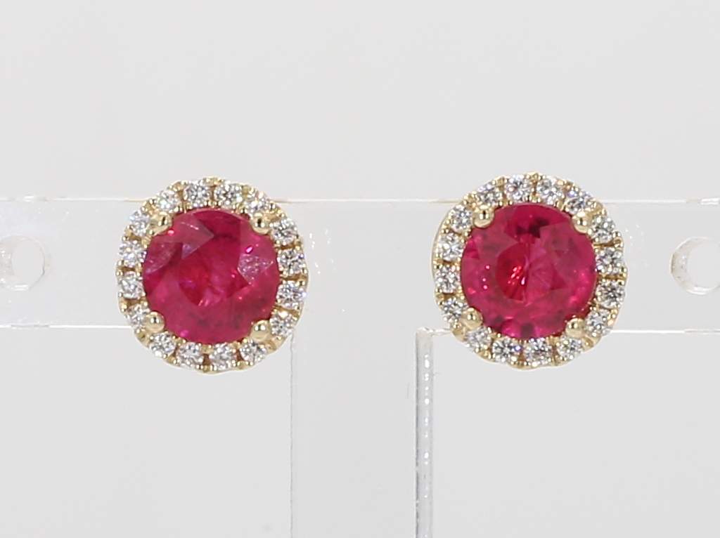 ROUND RUBY & ROUND DIAMOND 14KY EARRING