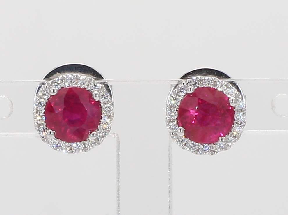 ROUND RUBY & ROUND DIAMOND 14KW EARRING