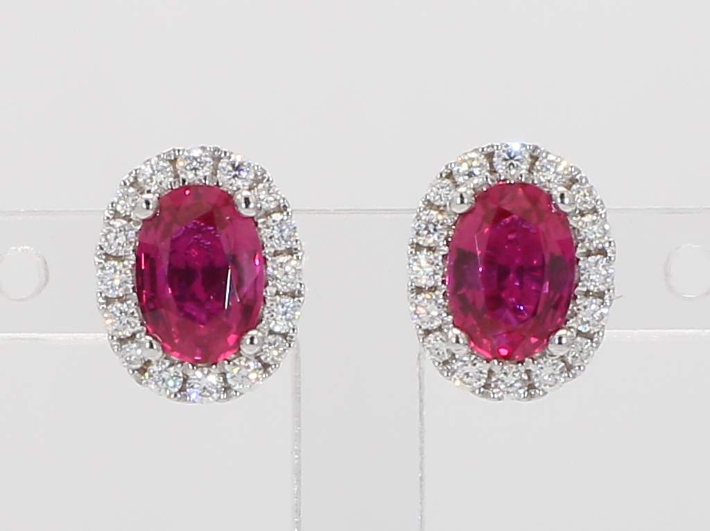 OVAL RUBY & ROUND DIAMOND 18KW EARRING