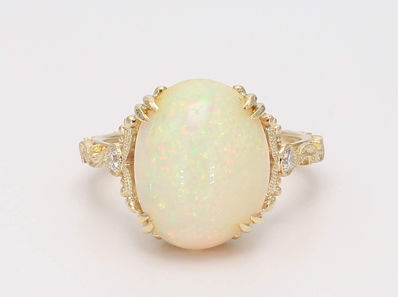 OVAL OPAL & ROUND DIAMOND 14KY RING