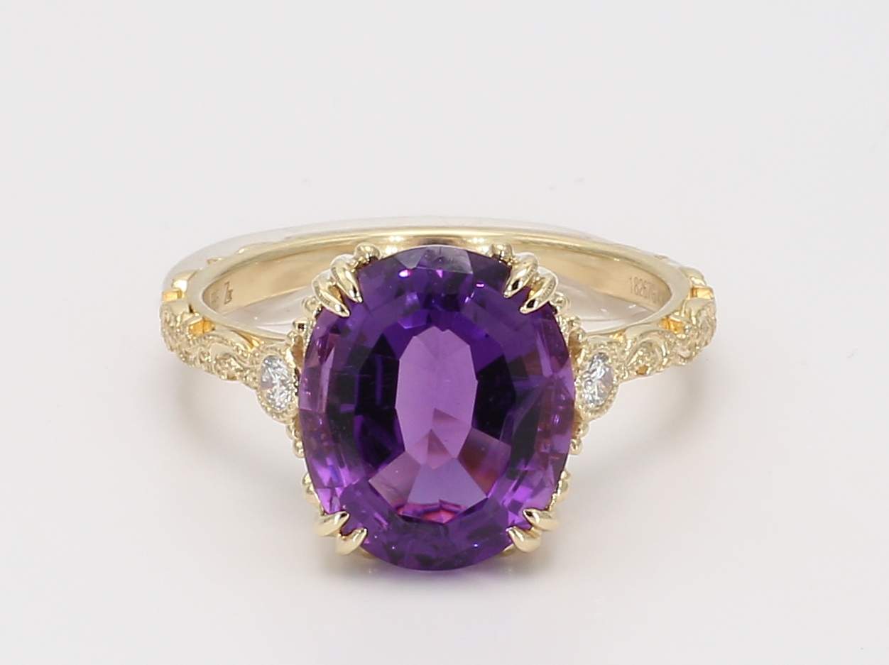 OVAL AMETHYST & ROUND DIAMOND 14KY RING