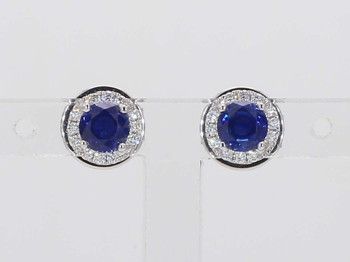 ROUND SAPPHIRE & ROUND DIAMOND 14KW EARRING