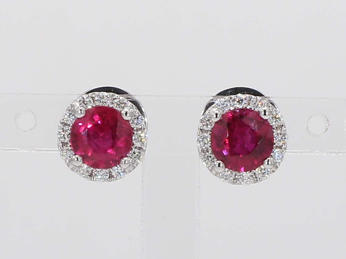 ROUND RUBY & ROUND DIAMOND 18KW EARRING