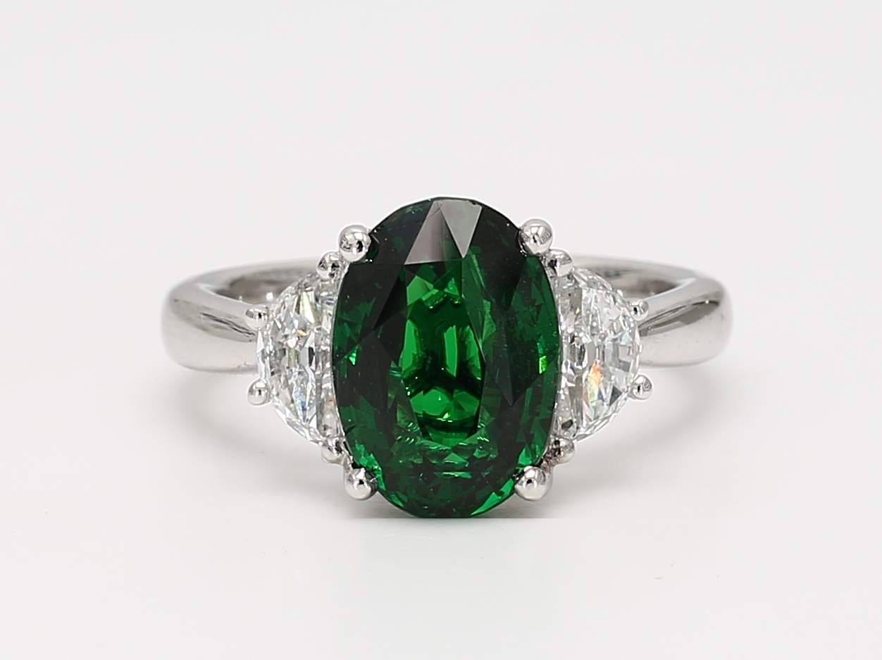 OVAL TSAVORITE GARNET & HALF MOON DIAMOND PLATINUM RING
