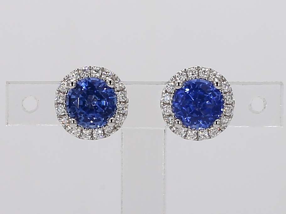 ROUND SAPPHIRE & ROUND DIAMOND 14KW EARRING