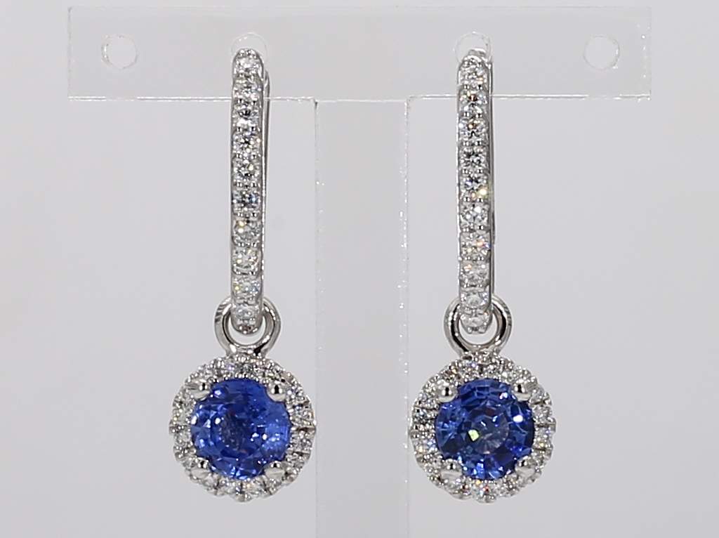 ROUND SAPPHIRE & ROUND DIAMOND 14KW EARRING