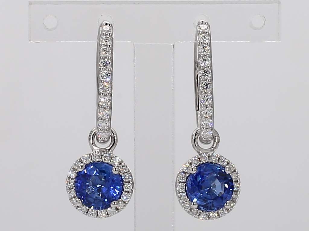 ROUND SAPPHIRE & ROUND DIAMOND 14KW EARRING