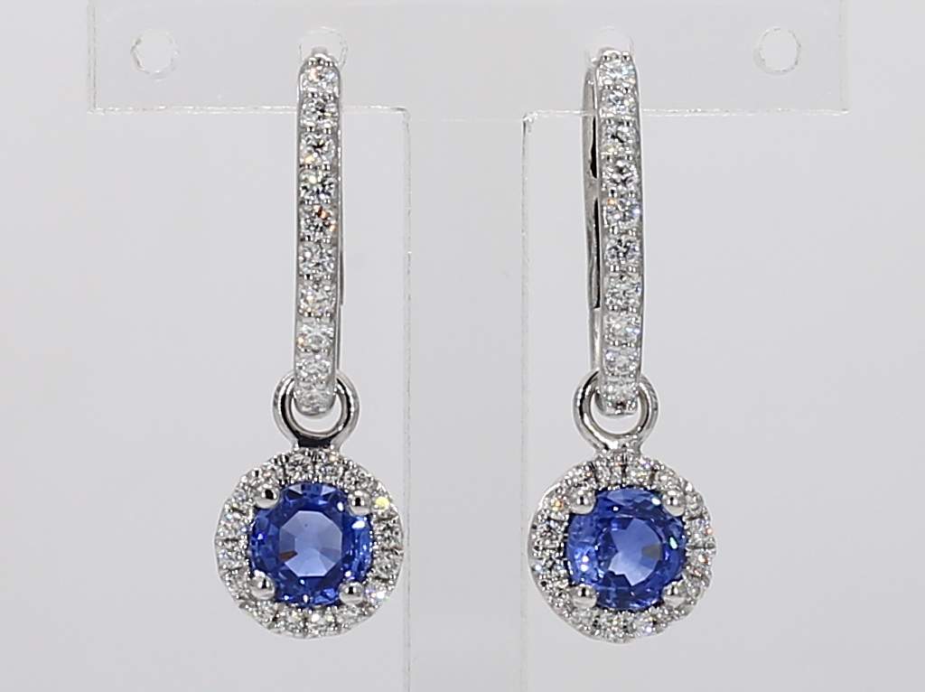 ROUND SAPPHIRE & ROUND DIAMOND 14KW EARRING