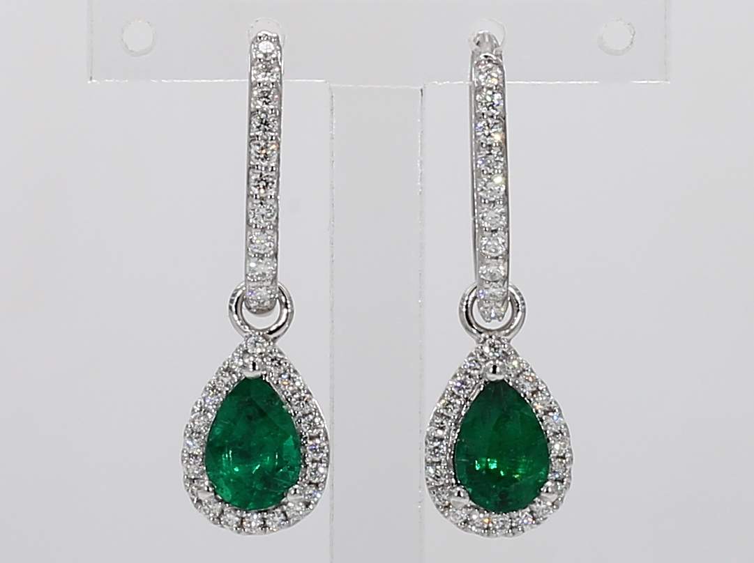 PEAR SHAPE EMERALD & ROUND DIAMOND 14KW EARRING