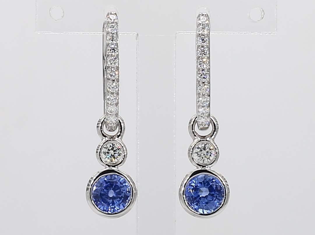 ROUND SAPPHIRE & ROUND DIAMOND 14KW EARRING