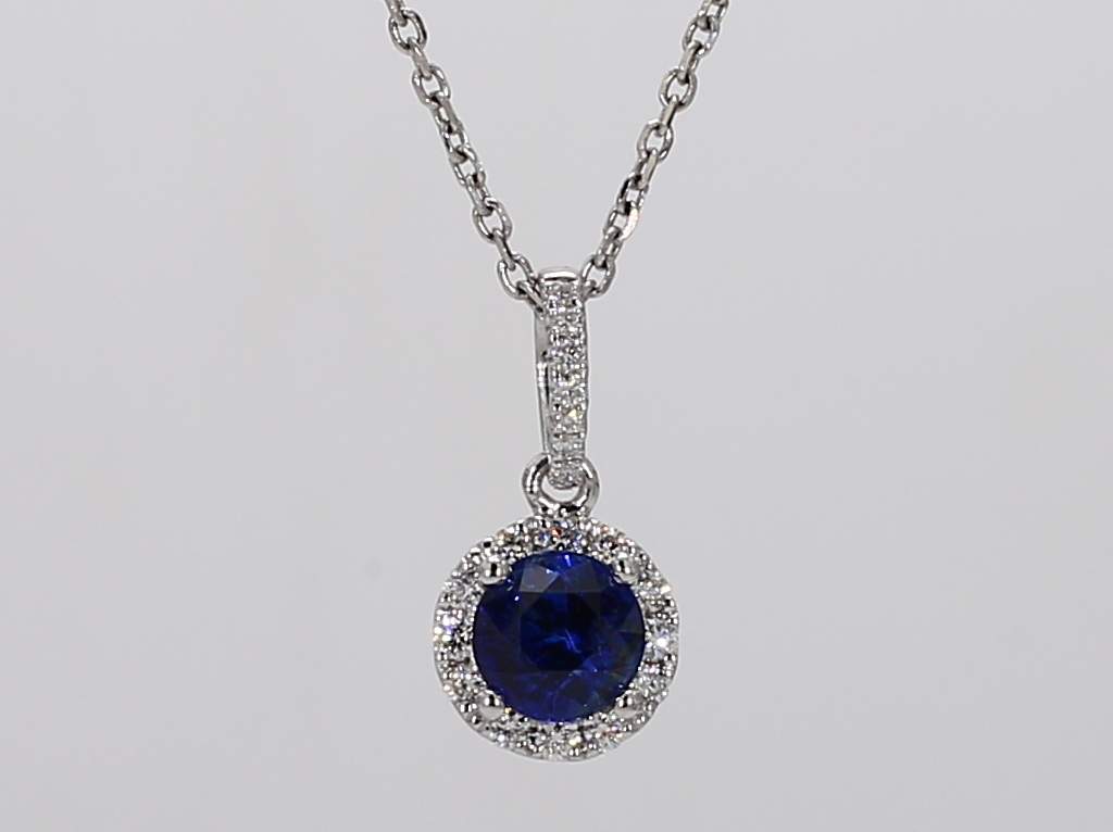 ROUND SAPPHIRE & ROUND DIAMOND 18KW PENDANT