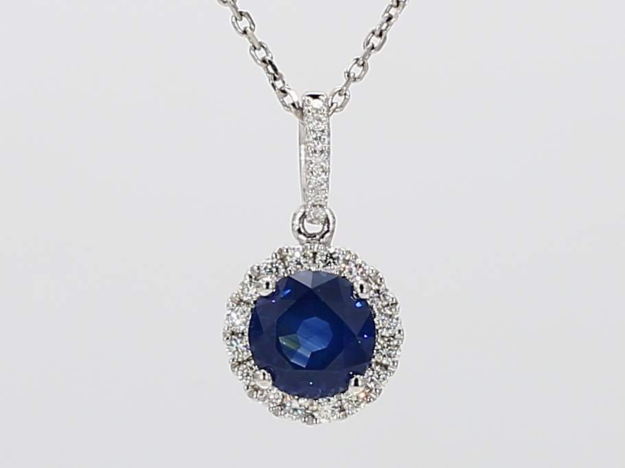 ROUND SAPPHIRE & ROUND DIAMOND 14KW PENDANT