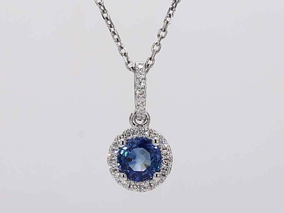 ROUND SAPPHIRE & ROUND DIAMOND 14KW PENDANT