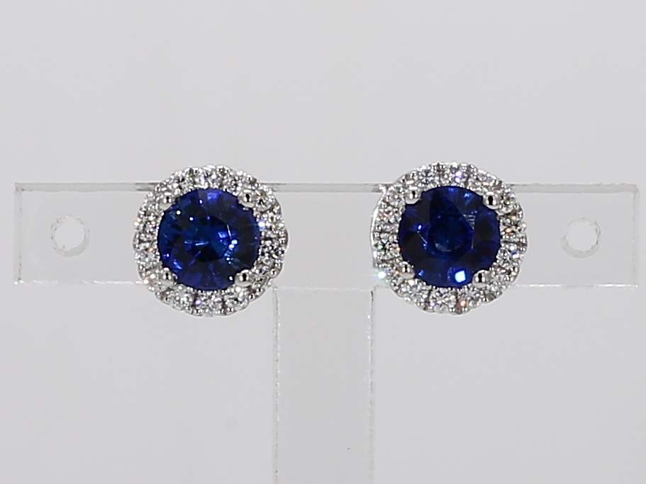 ROUND SAPPHIRE & ROUND DIAMOND 18KW EARRING