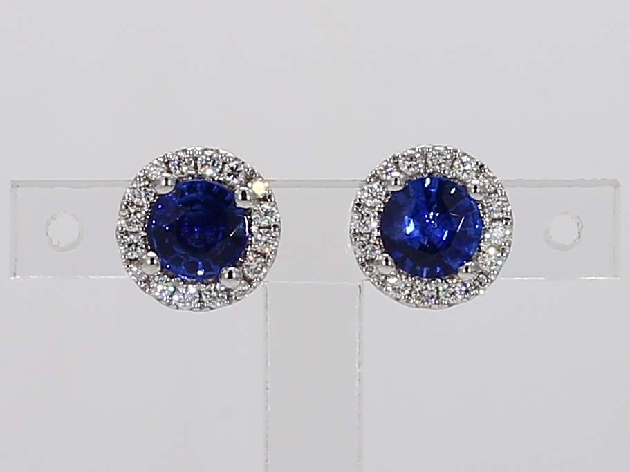 ROUND SAPPHIRE & ROUND DIAMOND 18KW EARRING