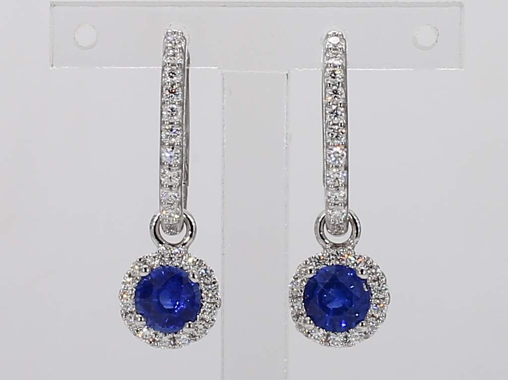ROUND SAPPHIRE & ROUND DIAMOND 18KW EARRING