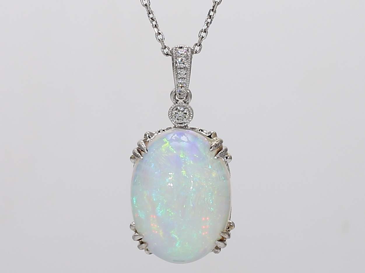 OVAL OPAL & ROUND DIAMOND 14KW PENDANT