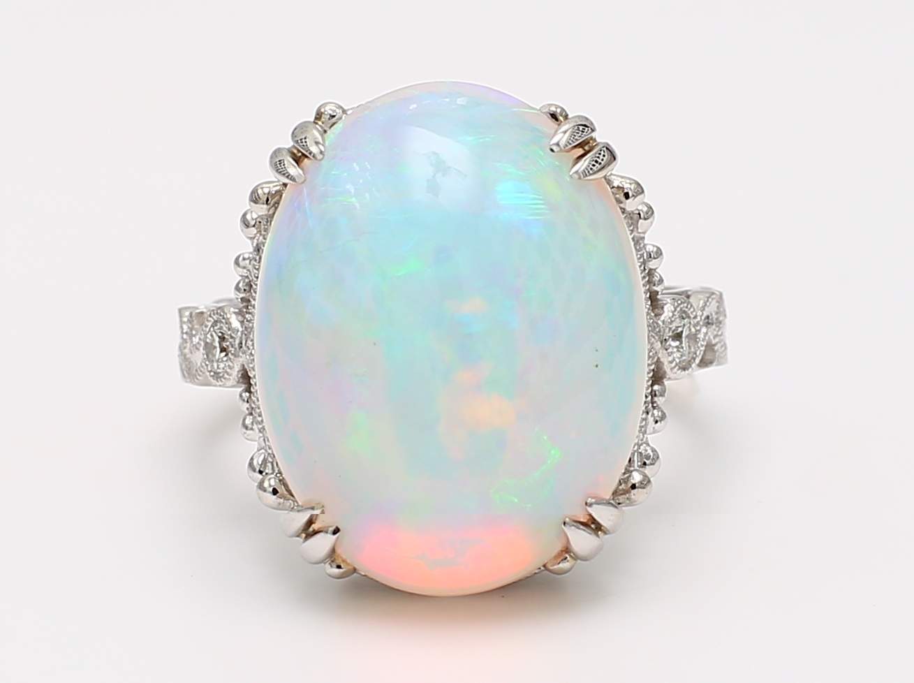 OVAL OPAL & ROUND DIAMOND 14KW RING