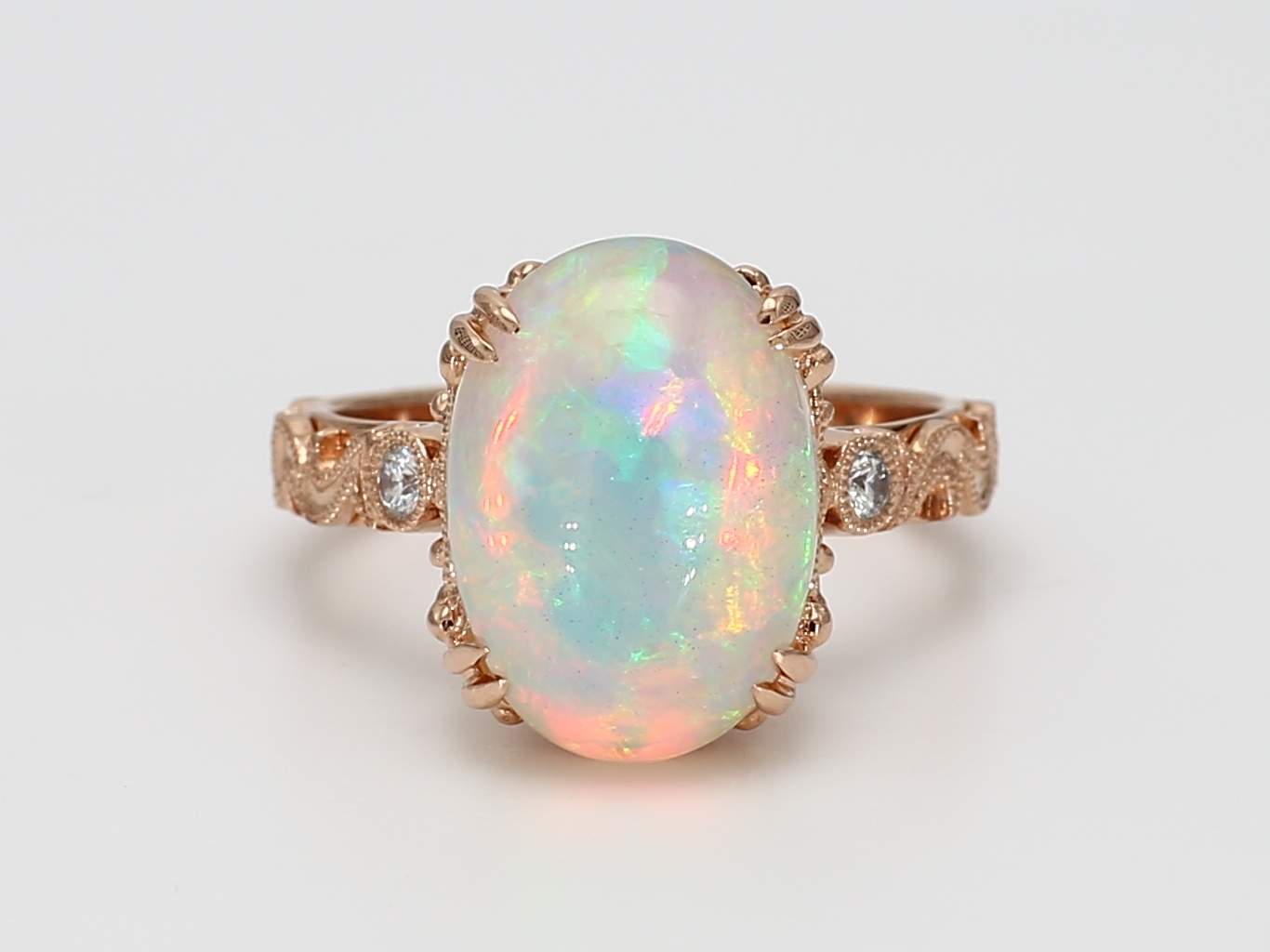 OVAL OPAL & ROUND DIAMOND 14KR RING