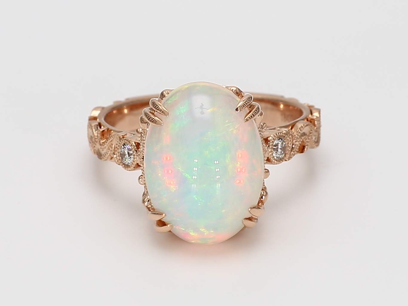 OVAL OPAL & ROUND DIAMOND 14KR RING