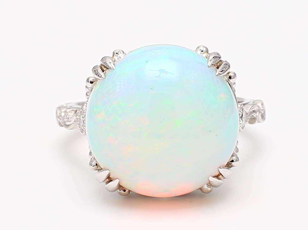 ROUND OPAL & ROUND DIAMOND 14KW RING