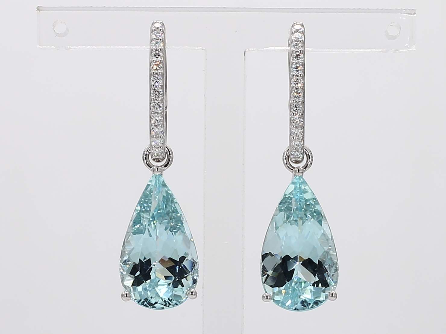 PEAR SHAPE AQUAMARINE & ROUND DIAMOND 14KW EARRING