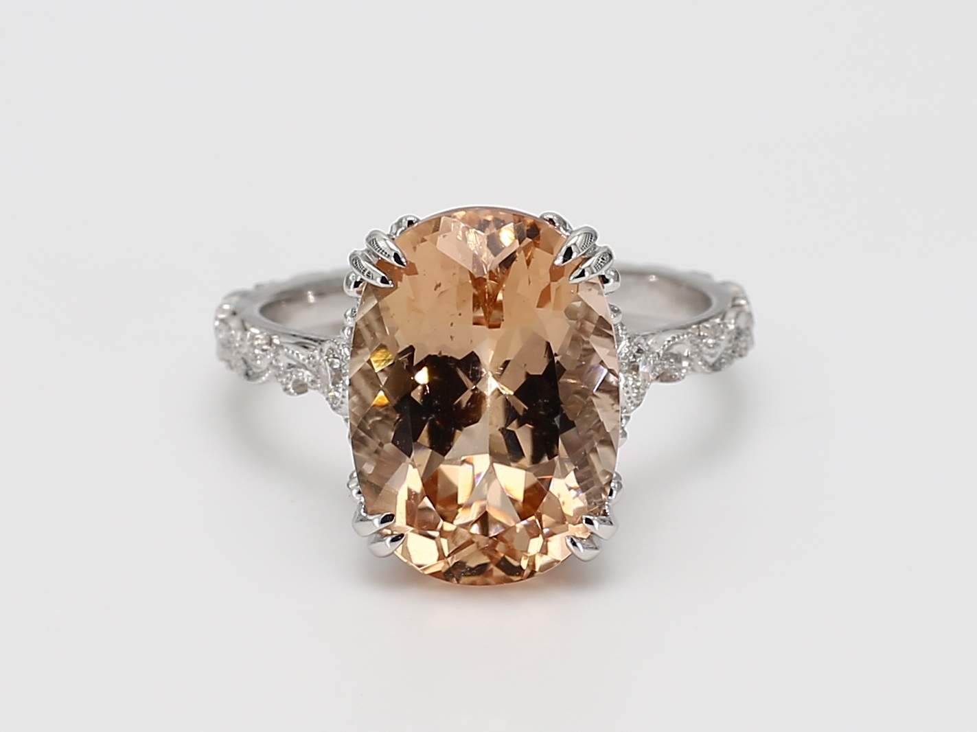 OVAL MORGANITE & ROUND DIAMOND 14KW RING