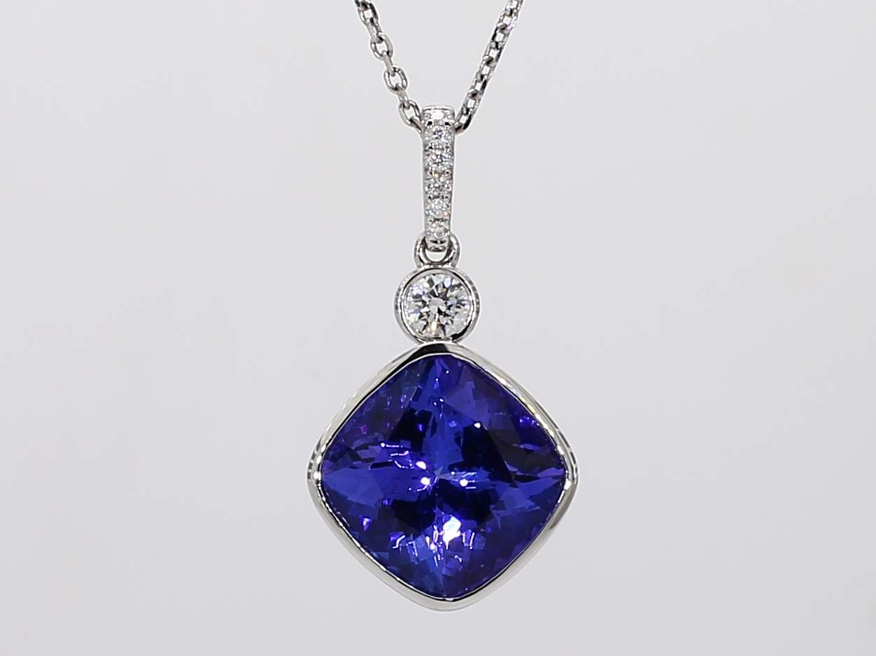 CUSHION TANZANITE & ROUND DIAMOND & ROUND DIAMOND 14KW PENDANT