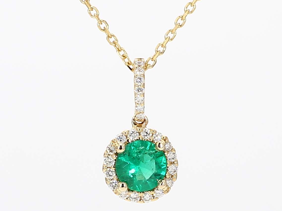 ROUND EMERALD & ROUND DIAMOND 14KY PENDANT