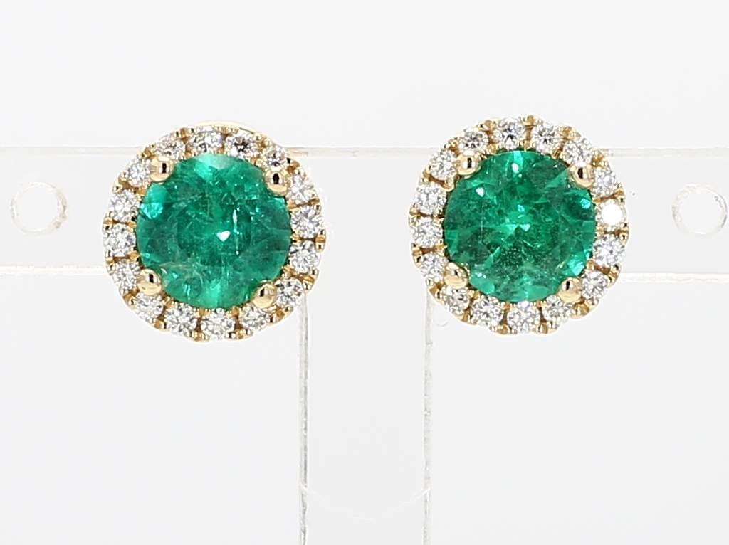 ROUND EMERALD & ROUND DIAMOND 14KY EARRING